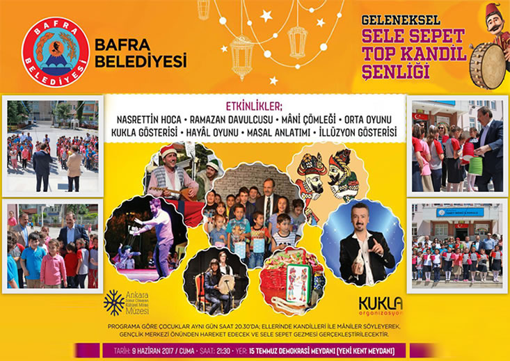 Bafra’da çok eski bir geçmişi olduğu belirtilen ve sadece ilçede yapılan Sele Sepet Top Kandil Şenlikleri’nin aslına uygun bir şekilde kutlanması için İlçe Milli Eğitim Müdürlüğü ve Belediye Kültür Müdürlüğü güzel bir etkinliğe imza atmak için çalışmalarını bu yıl da sürdürdü.