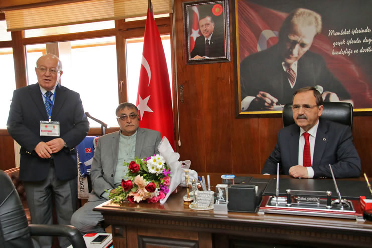 Bafra Belediyesi'nin katkılarıyla düzenlenen Uluslararası Neyzen Tevfik Kolaylı şiir ve sanat festivali için çeşitli ülkelerden gelen ve Bafra’da bulunan şair ve yazarlar Belediye Başkanı Zihni Şahin’i makamında ziyaret etti.