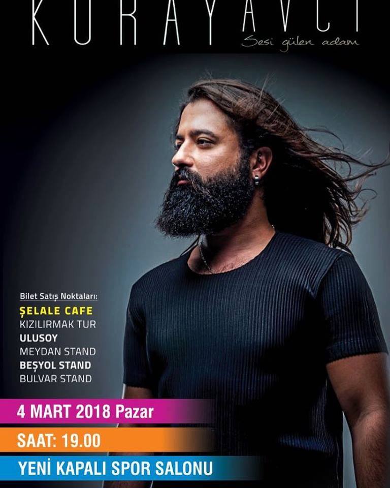 Samsun`un Bafra İlçesi`nde faaliyet gösteren Şelale Cafe ve Kızılırmak Tur işbirliğinde düzenlenecek konser programında Koray Avcı sahne alacak. 04 Mart 2018 tarahinde Yeni Kapalı Spor Salonunda yapılacak konser 19.00`da başlayacak.