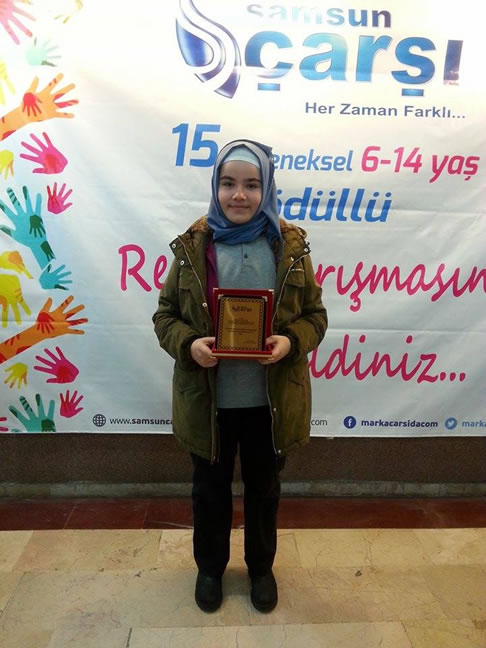 Bafra Cumhuriyet Ortaokulu, 6. sınıf öğrencisi Şahende Çelenk, Samsun da 15 yıldır Çarşı Mağazaları'nın düzenlemiş olduğu geleneksel resim yarışmasında " Türkiyem" konulu yaptığı bir eseriyle, 3 bin eser arasında, kendi kategorisinde Jüri Özel Ödülü'ne layık görüldü.