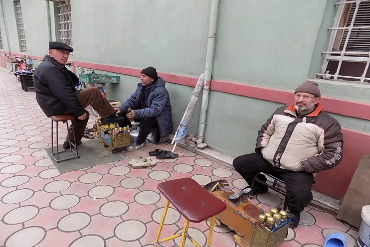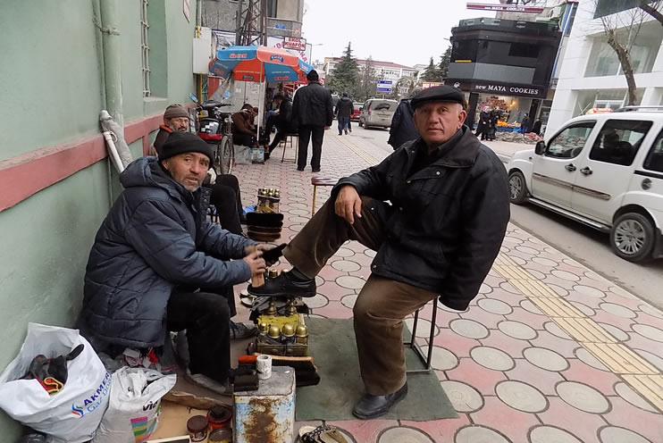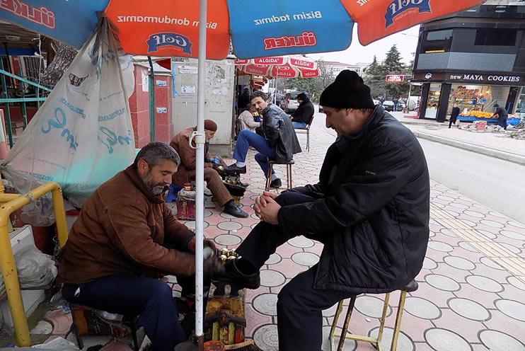 Salim Ekici'ye ayakkabısını boyatan bir müşteri de " herkes mesleğini yapıyor. Ekmek parası kazanıyor, ekmek derdinde " diye konuştu.