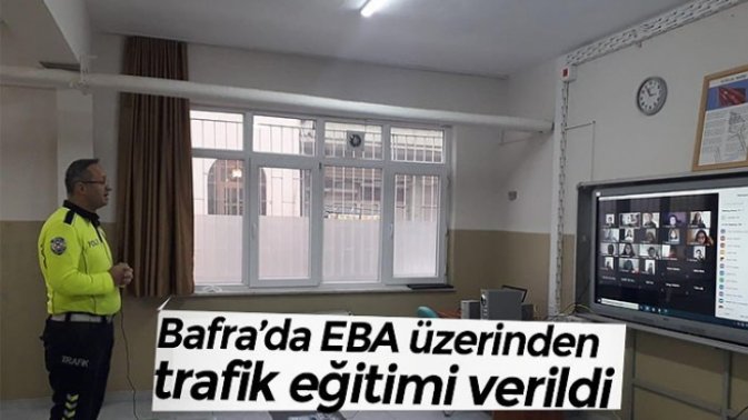 Samsun'un Bafra ilçesinde, İlçe Emniyet Müdürlüğü Trafik Denetleme Büro Amirliğince öğrencilere Eğitim Bilişim Ağı (EBA) üzerinden trafik eğitimi verildi.