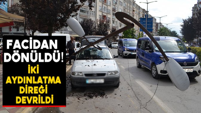 Samsun`un Bafra ilçesinde devrilen elektrik direkleri bir otomobilin üzerine düşerek maddi hasar meydana geldi.