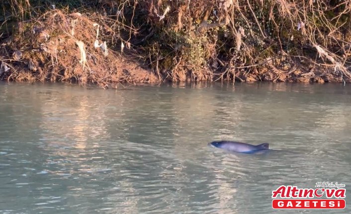 Limanın bulunduğu boğaz mevkisinden yaklaşık 12 kilometrelik ırmak yatağı boyunca ilerleyen yunusu Çağlayan bölgesinde görenler, durumu yetkililere bildirdi.