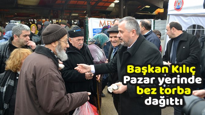 Başkan Kılıç Pazar yerinde bez torba dağıttı