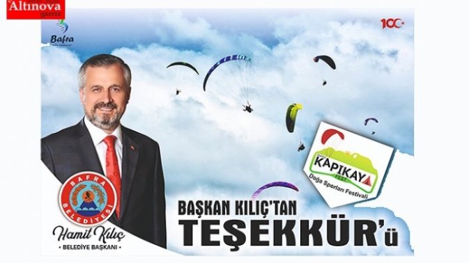 Bafra Belediye Başkanı Hamit Kılıç, 24-28 Temmuz tarihleri arasında üçüncüsü gerçekleştirilen Kapıkaya Doğa Sporları ve Kültür Festivali ile ilgili açıklamalarda bulunarak, katılım ve katkı sağlayanlara teşekkür etti.