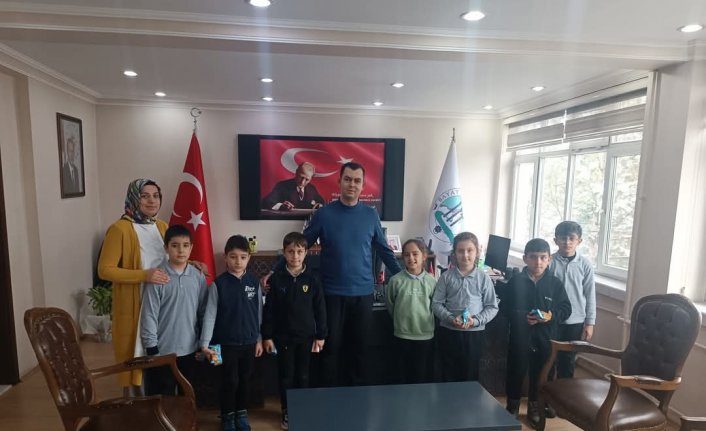 Bayat Atatürk İlkokulu 3. sınıf öğrencileri, Bayat Kaymakamı Kerem Yüce ve Bayat Belediye Başkanı Ahmet Bahadır Ünlü'yü ziyaret etti.