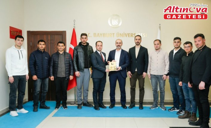 Milli Türk Talebe Birliği Bayburt İl Başkanı Yunus Emre Camadan, Türk-İslam medeniyetine yön vermiş ilim, fikir ve devlet adamlarını konu alan "İz: Türk- İslam Dünyasına Katkı Sunan Şahsiyetler" adlı kitabı, Rektör Prof. Dr. Mutlu Türkmen'e takdim etti.
