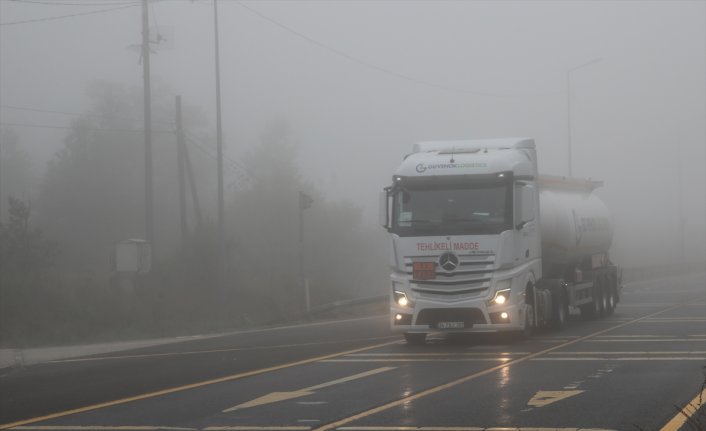 D-100 kara yolunun Bolu Dağı geçişinde sis, görüş mesafesini azalttı.