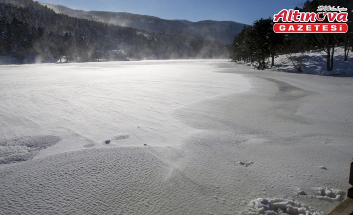 Kent merkezine yaklaşık 13 kilometre uzaklıkta bulunan tabiat parkındaki gölün yüzeyi, hava sıcaklığının sıfırın altına düşmesiyle dondu.