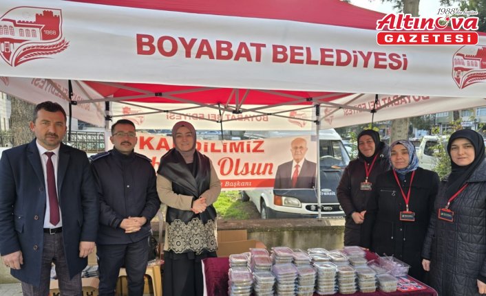 Boyabat Belediye Başkan Yardımcısı Ayşenur Türkmen ve Sosyal Hizmetler Birimi çalışanları Dörtyol mevkisinde stant açarak vatandaşların Berat Kandili'ni kutlayıp helva ikramında bulundu.