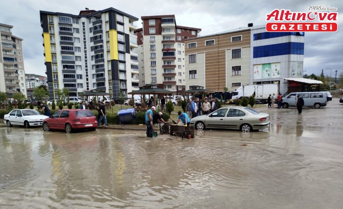 Sinop’un Boyabat ilçesinde etkili olan sağanak nedeniyle bazı ev ve iş yerlerini su basarken, araçlar trafikte ilerlemekte güçlük çekti.