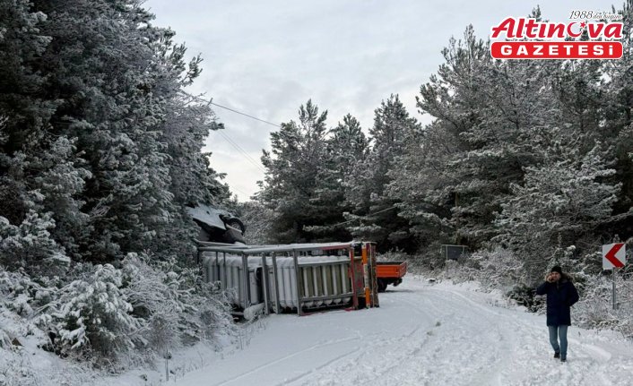 Bozkurt-Abana kara yolunun Darsu köyü mevkisinde Salim Özdemir yönetimindeki plakası öğrenilemeyen boş doğal gaz tüplerinin bulunduğu tır şarampole devrildi.