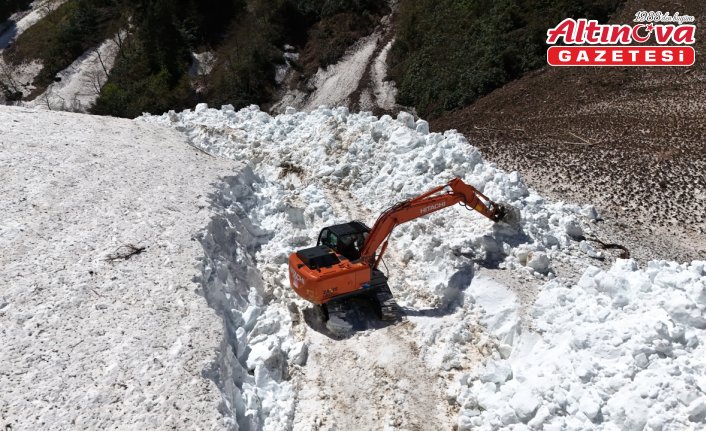 Rize'nin Çamlıhemşin ilçesine bağlı Avusor ve Kavrun yaylaları yollarında iş makineleriyle karla mücadele çalışması devam ediyor.