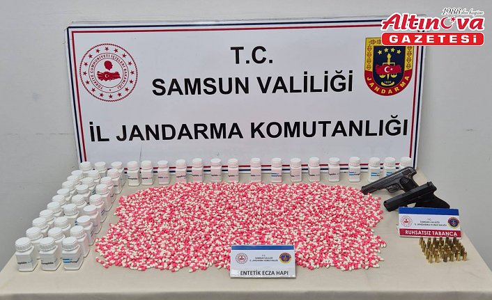 Adreslerde arama yapan ekipler, 4 bin 566 sentetik ecza hapı, 2 ruhsatsız tabanca ve 100 tabanca fişeği ele geçirdi.
