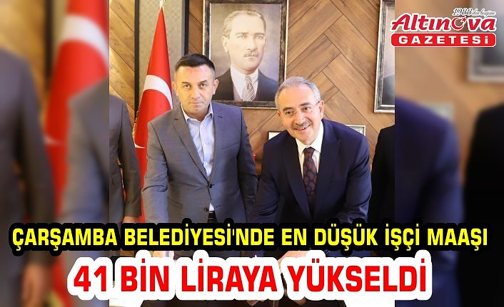 Çarşamba Belediye Başkanı Hüseyin Dündar ve Hizmet İş Sendikası Samsun Şube Başkanı Ziya Uzun, 399 işçinin faydalanacağı ücret ve sosyal hakları düzenleyen toplu iş sözleşmesi protokolü imzaladı.