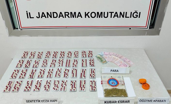 Aramada, 559 sentetik ecza hapı, 20 gram esrar, uyuşturucu öğütme aparatı ve uyuşturucu ticaretinden elde edildiği değerlendirilen bir miktar para ele geçirildi.