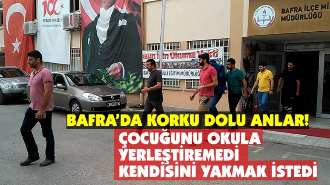 Samsun’un Bafra ilçesinde bir kişi 2019-2020 eğitim öğretim sezonunda çocuğunun istediği okula yerleştirilmediği gerekçesi ile İlçe Milli Eğitim Müdürlüğü’ne giderek kendisini yakmak istedi.
