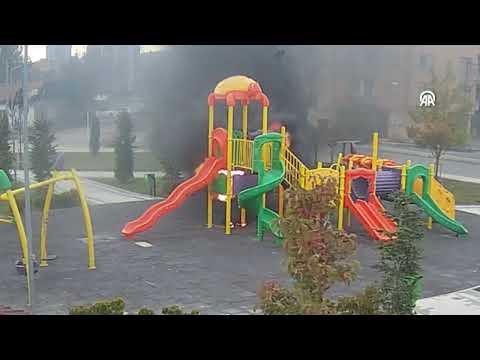 Çorum'da bir parkta çocukların çıkardığı yangın güvenlik kamerasında