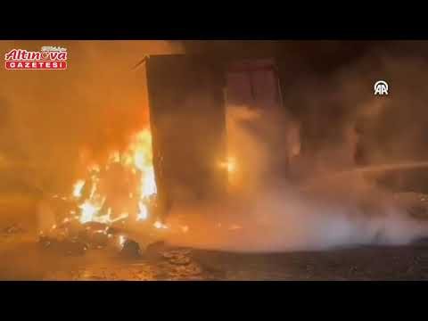 Çorum'da yanan kumaş yüklü tır kullanılamaz hale geldi