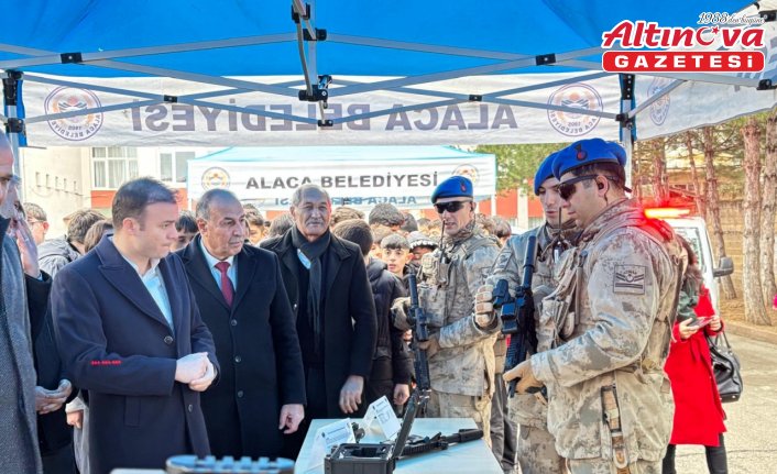 Alaca İmam Hatip Ortaokulunda "Milli Teknoloji Hamlesi" temasıyla düzenlenen etkinlikte Alaca İlçe Emniyet Müdürlüğü, İlçe Jandarma Komutanlığı ekiplerince öğrencilere tanıtım ve bilgilendirme yapıldı.