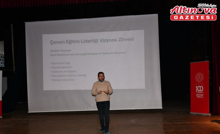 Toplantıda Prof. Dr. Ebru Oğuz, "Eğitimde Dönüşümün Şifreleri: Çevik Liderlik ve Sürdürülebilir Başarı", Dr. Ahmet Aydemir ise "Geleceği Tasarlayan Eğitim Liderleri" konularında sunum yaptı. ÇORUM (AA)