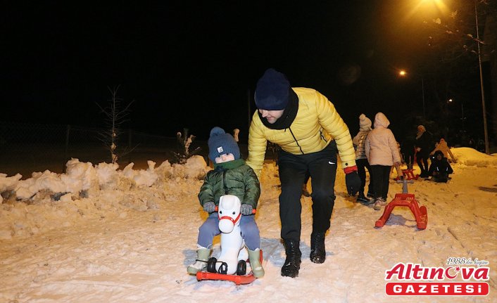 Soğuk havaya aldırış etmeden müzik eşliğinde kızakla kayan aileler ile çocukları doyasıya eğlendi.