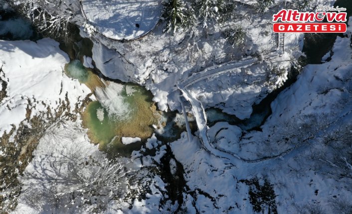 Giresun'un Dereli ilçesinde karın ardından Mavigöl ile Kuzalan Şelalesi'nin bulunduğu bölge beyaza büründü.