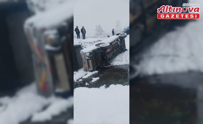 Y.Ü. idaresindeki 06 DF 1082 plakalı pikap, Düzce-Yığılca kara yolunun Çiftlik köyü mevkisinde kar yağışı nedeniyle kayganlaşan yolda kontrolden çıkarak kanala devrildi.