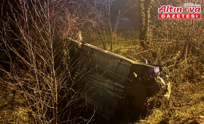 Çarpışmanın etkisiyle savrulan iki araç yol kenarındaki boş su kanalına devrildi.