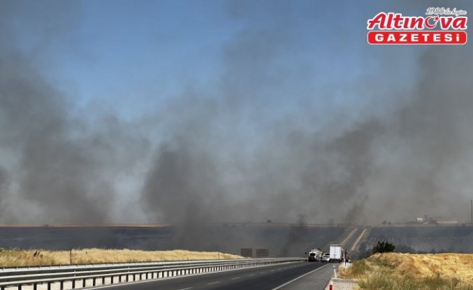 Edirne'de geniş alanda etkili olan anız yangınına müdahale ediliyor