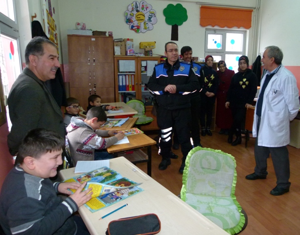 Bafra Emniyet Müdürlüğü Toplum Destekli Polislik Büro Amirliği Baş polis Metin Cabbar ve Polis Memuru Mustafa Sürmeli, Bafra Kızılırmak İlkokulunda, öğrencilerle sohbet etti.