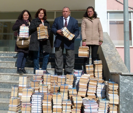 Araca yüklediği kitapları Bafra Hükümet Konağı önüne getiren Bafra Umut Derneği (BAFUMDER) Başkanı Hülya Yangın Ertekin, Bafra Kaymakamlığı Yazı İşleri Müdürü Necmettin Özel'e 1000 adet kitabı teslim etti.
