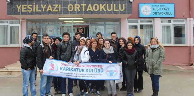 OMÜ Karikatür Kulübü tarafından Bafra Yeşilyazı İlk ve Ortaokulu’ da çizim, boyama ve karikatür çalışması yapıldı.