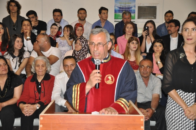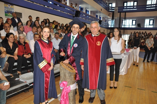 Okul birincisi olan Coşkun Yılmaz mezuniyet kütüğüne birincilik levhasını rektör yardımcısı Prof. Dr. Sevilhan Mennan ile dekan Prof. Dr. Osman İmamoğlu ile birlikte çaktı.