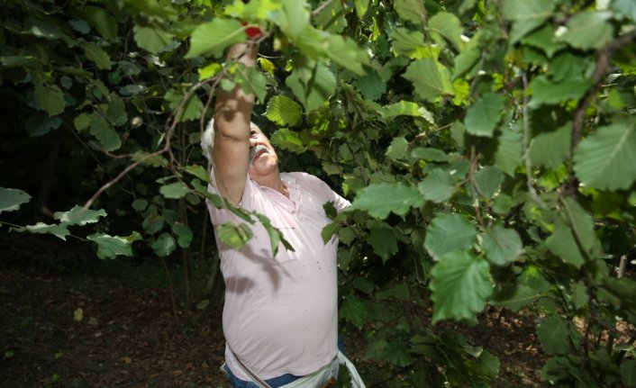 Saraycık Mahallesi'nde kendi imkanlarıyla bahçesindeki fındıkları toplayan üreticilerden Sabri Pala, gazetecilere yaptığı açıklamada, hasada başladıkları için çok mutlu olduklarını söyledi.