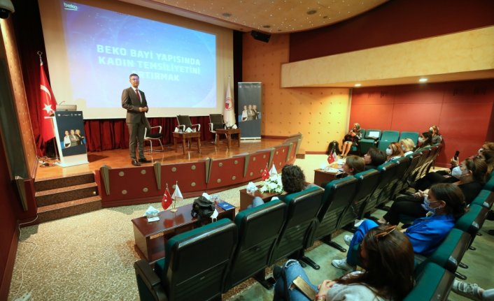Konuşmaların ardından Beko Satış Yöneticisi Fatih Yılmaz, Beko 100 Kadın Bayi Projesi'yle ilgili katılımcılara sunum yaptı.