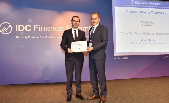 Türkiye Finans, IDC Türkiye tarafından düzenlenen ve dijital dönüşüm alanında fark yaratan projelerin yer aldığı "IDC Finance Summit 2019"da "Financial Inclusion" kategorisinde ticari kredi değerlendirme, tahsis ve kredi kullandırım sürecinin etkin bir şekilde işletilmesini sağlayacak "Kredi Dönüşüm Programı" projesiyle ödül almaya hak kazandı.