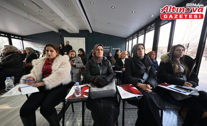 Anıtpark Alanı'nda konuşlandırılan eğitim tırında, 2 oturumda 90 kadına girişimcilik eğitimi verildi.