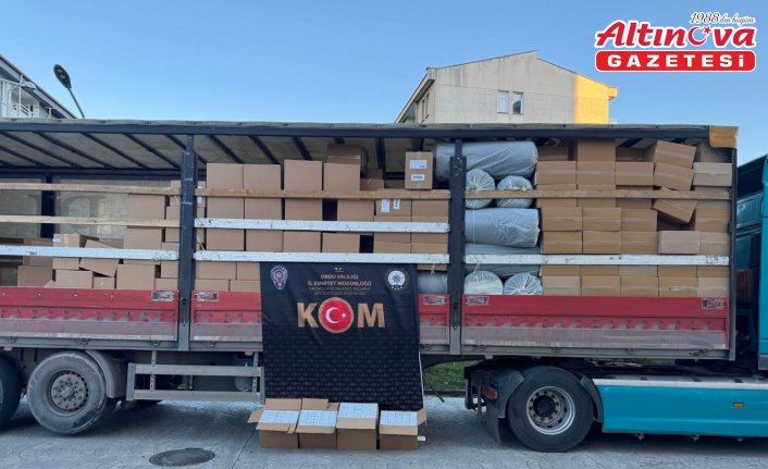 Ordu'nun Fatsa ilçesinde durdurulan tırda 5 milyon 560 bin makaron (filtreli sigara kağıdı) ele geçirildi.