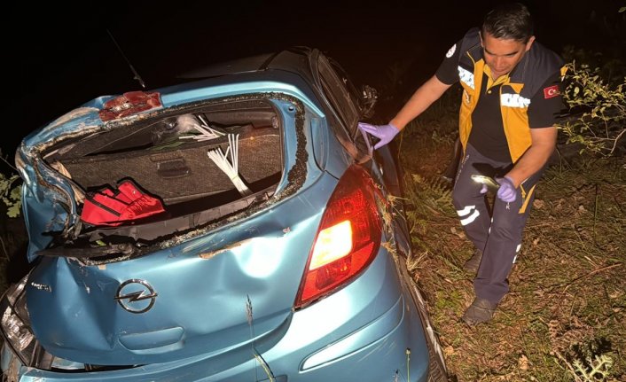 Olay yerine giden ekipler, yoldan çıkarak ağaçların arasından yaklaşık 40 metrelik uçuruma yuvarlanan aracı buldu.