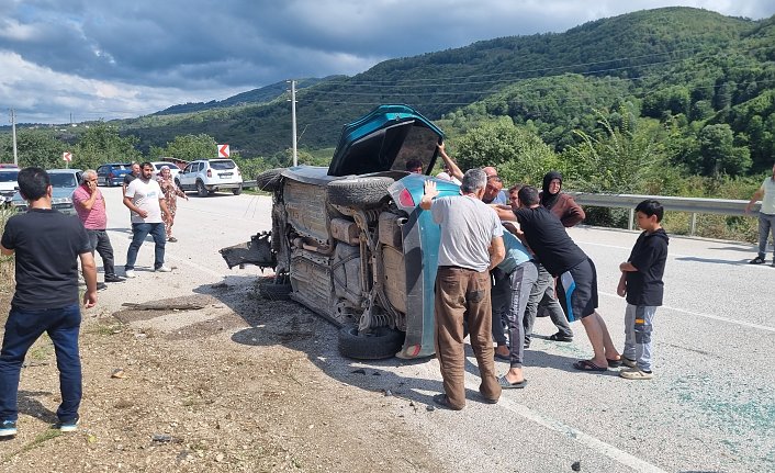 Düzce'nin Yığılca ilçesinde otomobilin devrilmesi sonucu 3 kişi yaralandı.