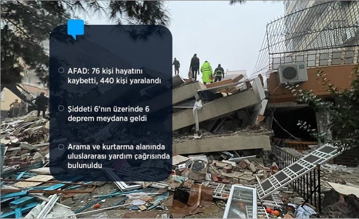 AFAD'dan yapılan açıklamada, en büyüğü 6,6 büyüklüğünde olmak üzere 06.30 itibarıyla 42 artçı depremin meydana geldiği belirtildi.