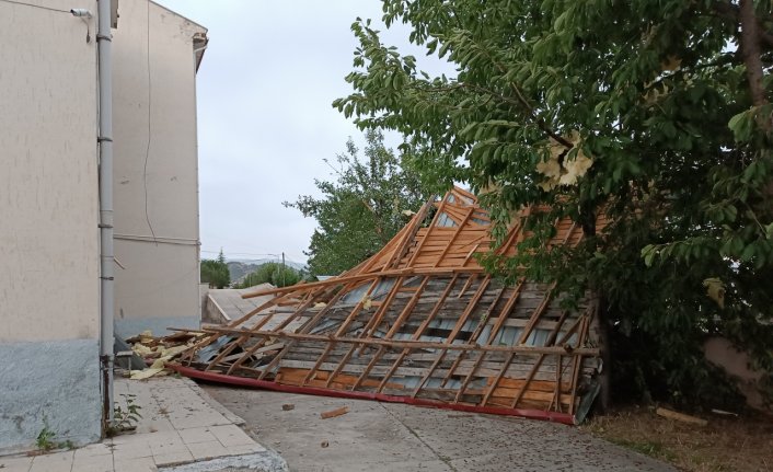 Kastamonu'nun Tosya ilçesinde etkili olan şiddetli fırtına bir okulun çatısını uçurdu.