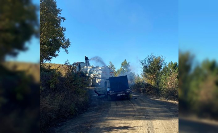 Yangın sonucu araçta hasar meydana geldi.   SİNOP (AA)