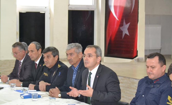Toplantıya İlçe Emniyet Müdürü Selahattin Batman, kurum amirleri, il genel meclis üyeleri ile köy ve mahalle muhtarları katıldı.