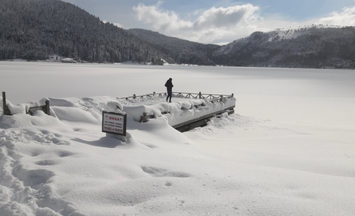 BOLU (AA) - Bolu'nun doğal güzellikleriyle ünlü Abant Tabiat Parkı'ndaki gölün yüzeyi buzla kaplandı.