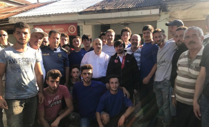 Çalışma alanının zor bir bölge olduğunu vurgulayan Güllüoğlu, "Melen Çayı'nın daha önce 15-20 metre genişliğinde akan kollarının belki yüzlerce metreye varan yerleri var. Etkili bir afet var karşımızda. Herkese geçmiş olsun dileklerimi iletiyorum." dedi.