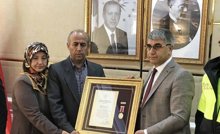 Şehit Ömer Bilal Akpınar'ın Devlet Övünç Madalyası, Vali Gürel tarafından şehidin anne ve babasına takdim edildi.