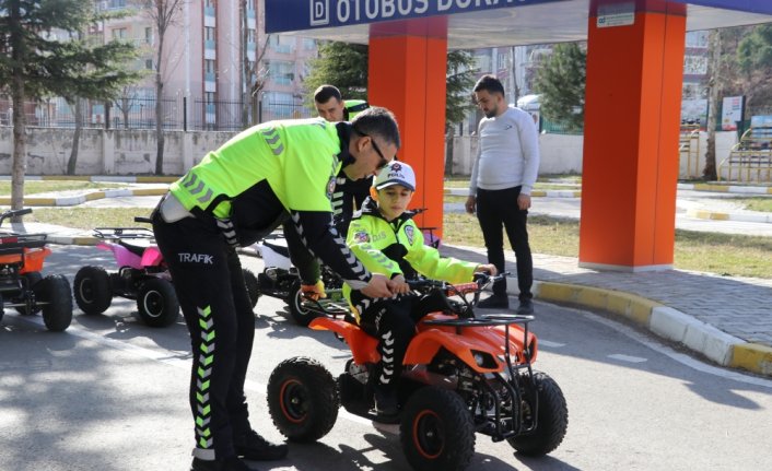 Mıkkırdı ekip otosuna binerek trafik polisleriyle birlikte fotoğraf çektirdi. Trafik polislerinden trafik kurallarını öğrenen minik öğrenci, akülü arabalarla trafik parkurunda tur attı.